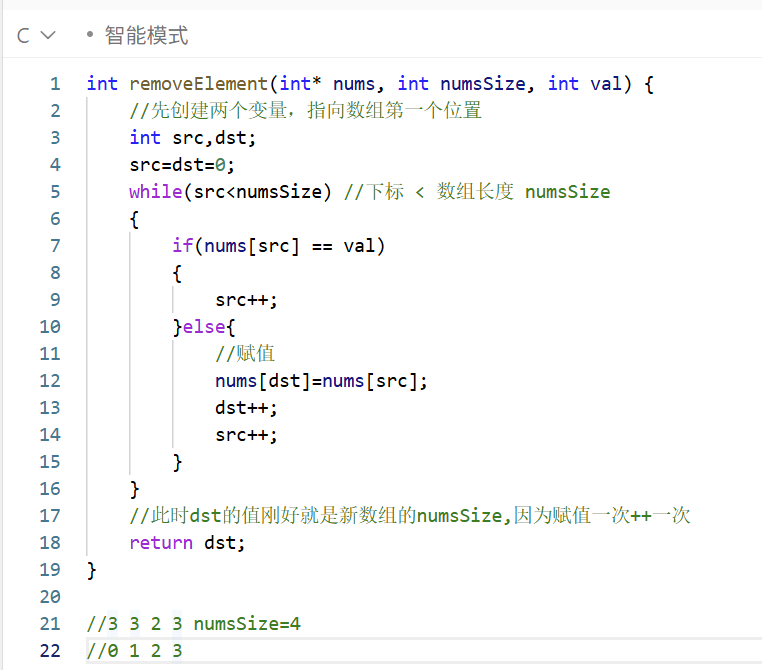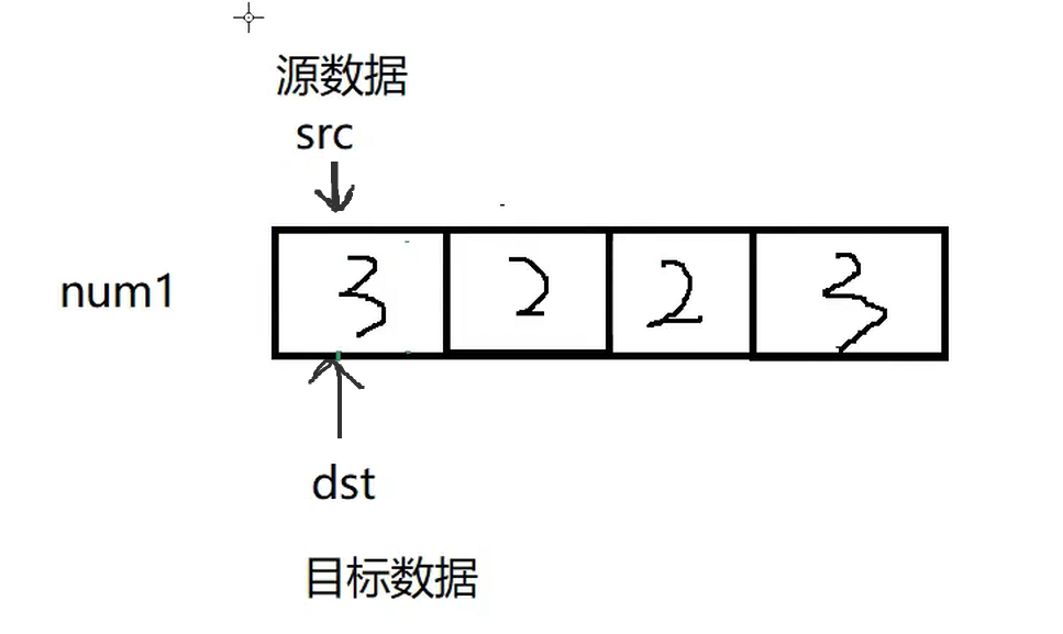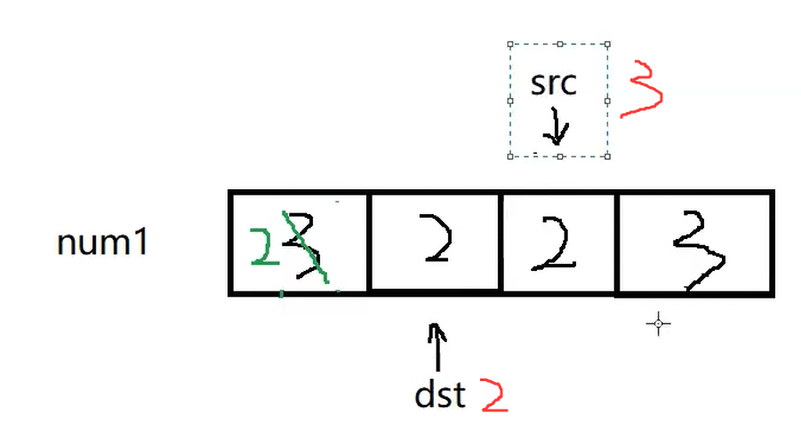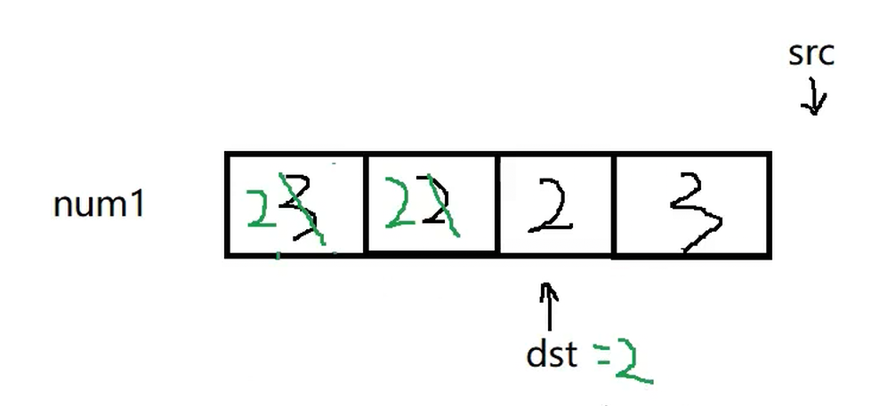 把src指向的位置的值给dst(nums[dst]=nums[src]),dst++,src++。