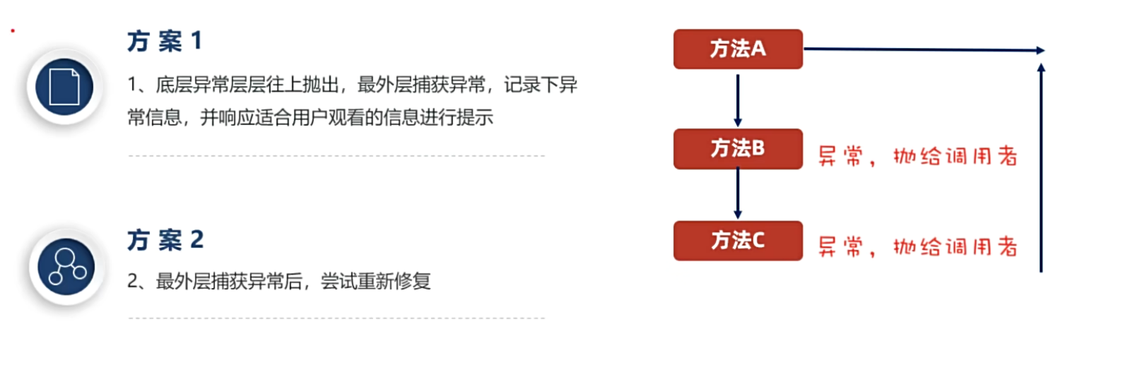 import java.util.Date;public class ExceptionDemo5 {public static void main(String[] args) {//目标:掌握异常的处理方案1:底层异常都抛出去给最外层调用者,最外层捕获异常,记录异常,响应合适信息给用户观看System.out.println("程序开始执行~~");try {show1();System.out.println("程序正常结束~~");}catch (Exception e){e.printStackTrace();System.out.println("程序出现异常,请稍后再试~~");}System.out.println("程序结束执行~~");}public static void show1() throws Exception{ //抛出多个异常,用逗号隔开。可以直接抛出Exception,抛出所有异常//编译异常:编译阶段报错,编译不通过,运行时异常String str = "2025-10-31 10:10:10";//把字符串时间解析成Java中的日期对象。SimpleDateFormat sdf = new SimpleDateFormat("yyyy/MM-dd HH:mm:ss");Date date = sdf.parse(str); //编译时异常:提醒程序员这里的程序很容易出错,请你注意!System.out.println(date);//在d盘读一个图片String path = "d:\\1.jpg";FileInputStream fis = new FileInputStream(path);}