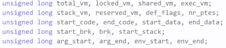 结构体内通过整数记录每块区域的start与end,来进行空间区域划分。(内核也只把地址作为一个整数看待而已)