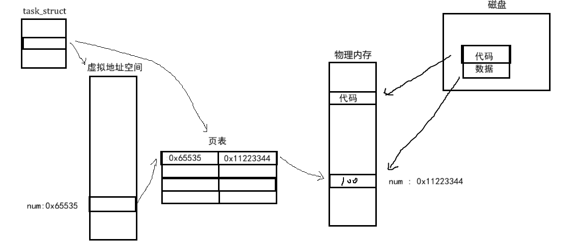 进程之后要访问这个数据,就要拿虚拟地址在页表中找到物理地址,从而获得物理地址中的值。