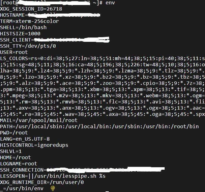 #include<stdio.h>int main(int argc, char* argv[], char* env[]){for(int i = 0; env[i]; i++){printf("env[%d] : %s\n", i, env[i]);}return 0;