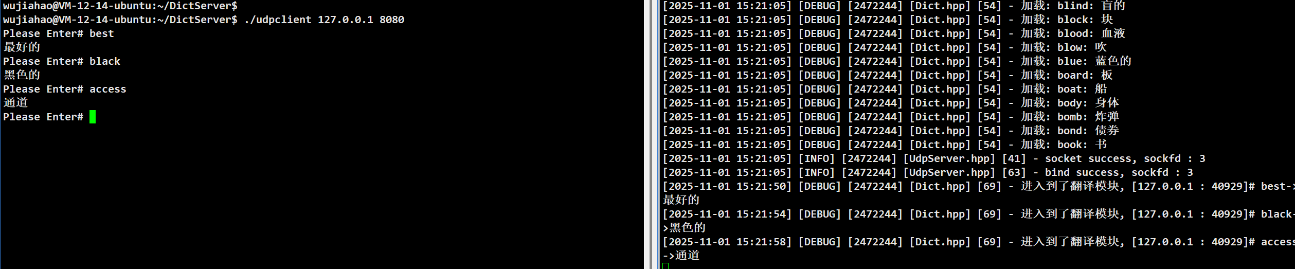 {if(argc != 2){std::cerr << "Usage: " << argv[0] << " port" << std::endl;return 1;}// std::string ip = argv[1];uint16_t port = std::stoi(argv[1]);Enable_Console_Log_Strategy();// 1. 字典对象提供翻译功能Dict dict;dict.LoadDict();// 2. 网络服务器对象,提供通信功能std::unique_ptr<UdpServer> usvr = std::make_unique<UdpServer>(port, [&dict](const std::string &word, InetAddr&cli)->std::string{return dict.Translate(word, cli);});usvr->Init();usvr->Start();return 0;