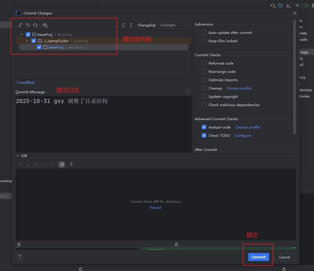把 .idea目录 和 target目录 加入忽略列表 之后 提交目录变更