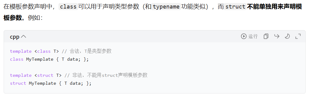 不过在 C++ 里,更推荐用class代替struct定义类 —— 两者的核心区别是默认访问权限(后面会讲)。