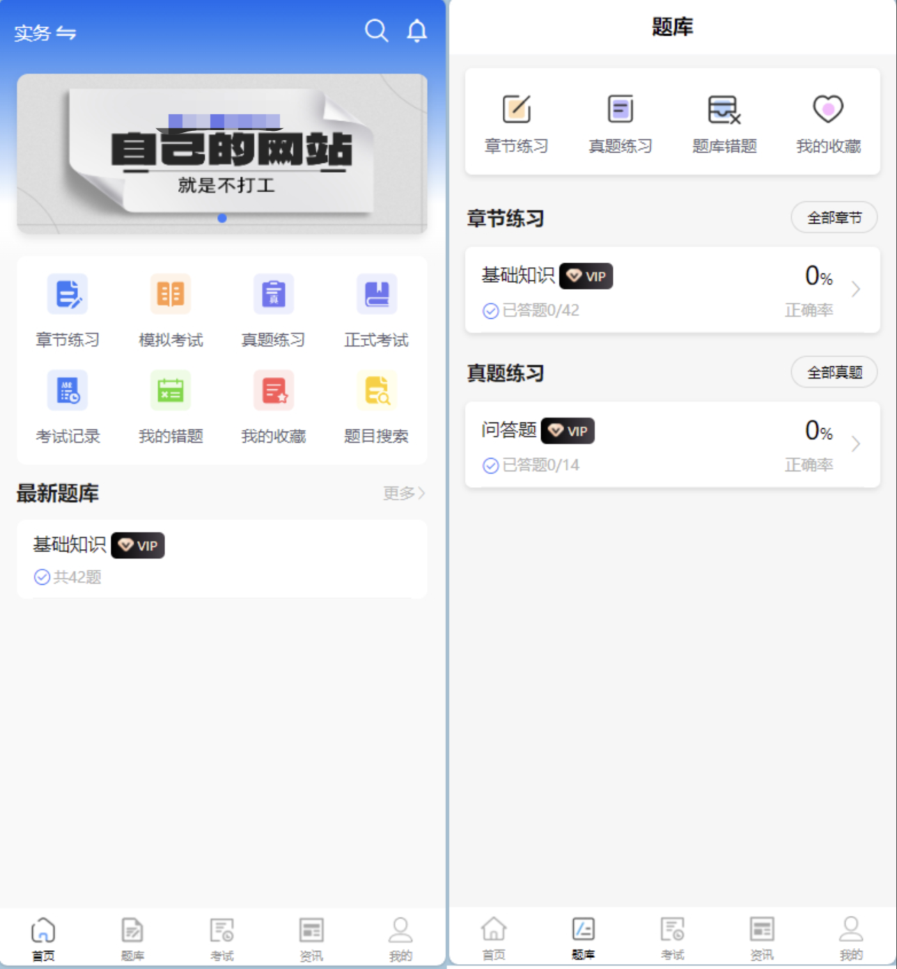实时正确率显示(如:0% 正确率,0/42题)