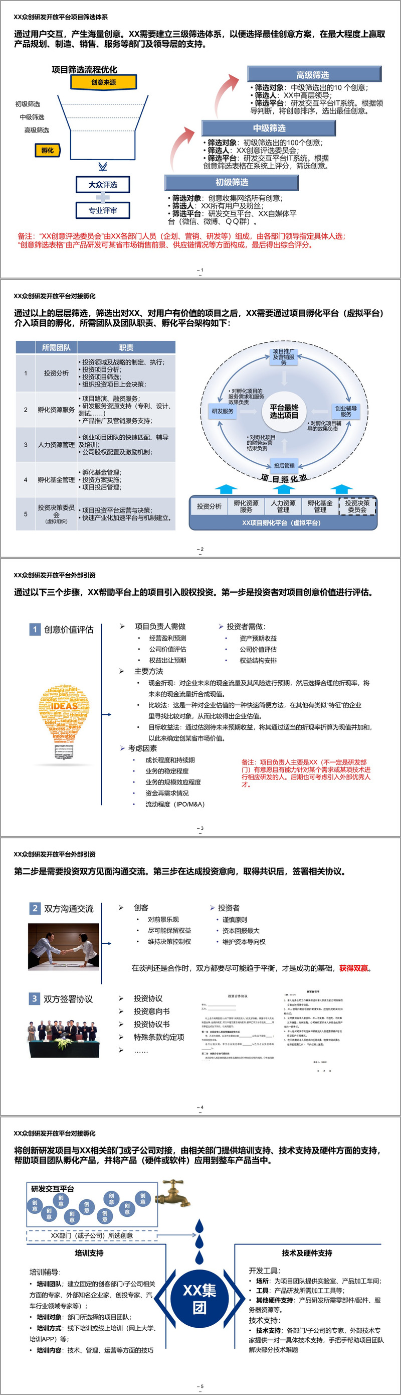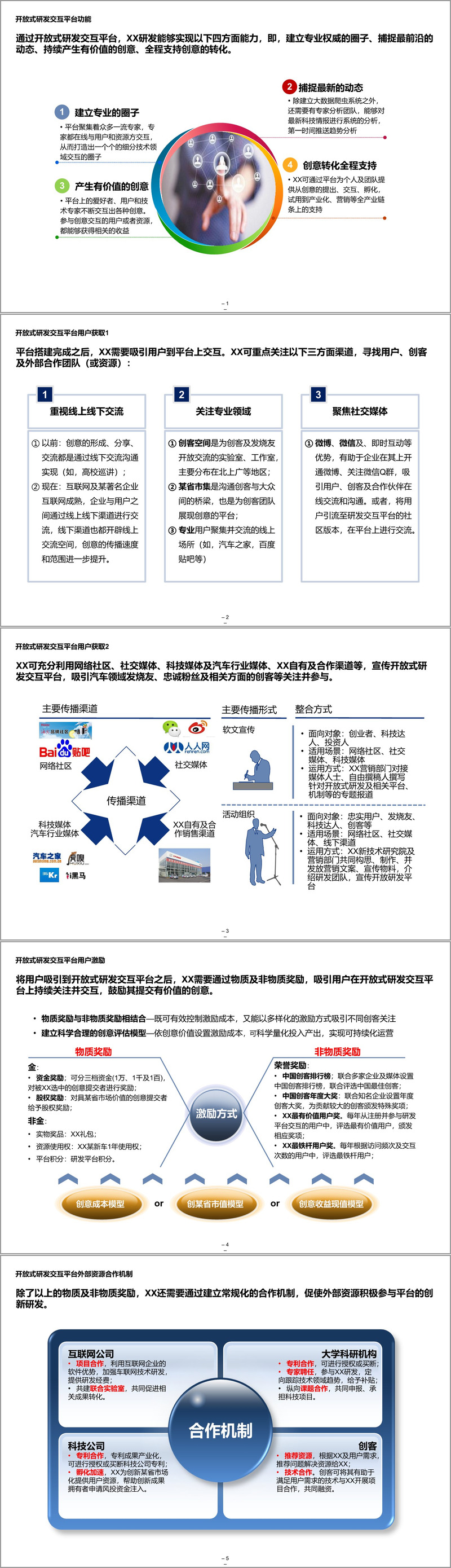 在具体平台建设上,众创研发平台是转型的创新引擎。针对集团研发用户参与度低、数据共享不足的现状,平台整合内外部资源(用户、创客、高校、供应商),设置创意收集、技术孵化、试用反馈等功能,通过三级筛选体系(大众评选 - 专业评审 - 高层决策)筛选优质项目,并引入股权投资机制加速孵化。同时,建立 “开放平台运营部” 专属团队,分阶段推进平台建设,4 年预计投入超 3000 万元,最终实现技术快速迭代与创收。