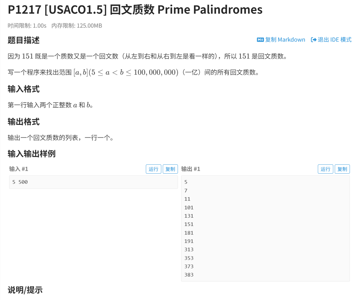 }P1217 [USACO1.5] 回文质数 Prime Palindromes