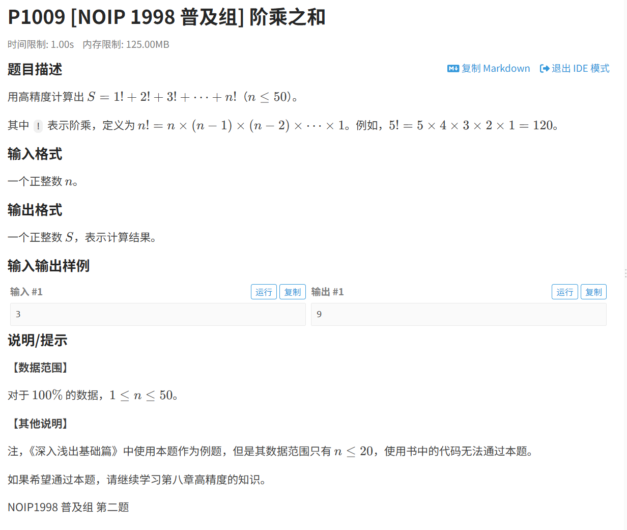 P1009 [NOIP 1998 普及组] 阶乘之和