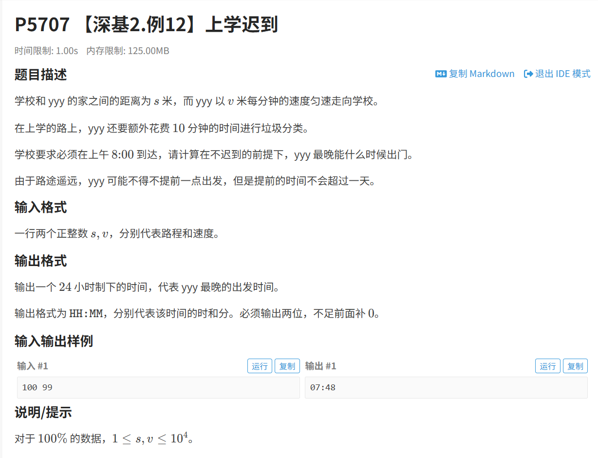 - 问的是最晚,也就是说到学校是8:00 ,求出发时间