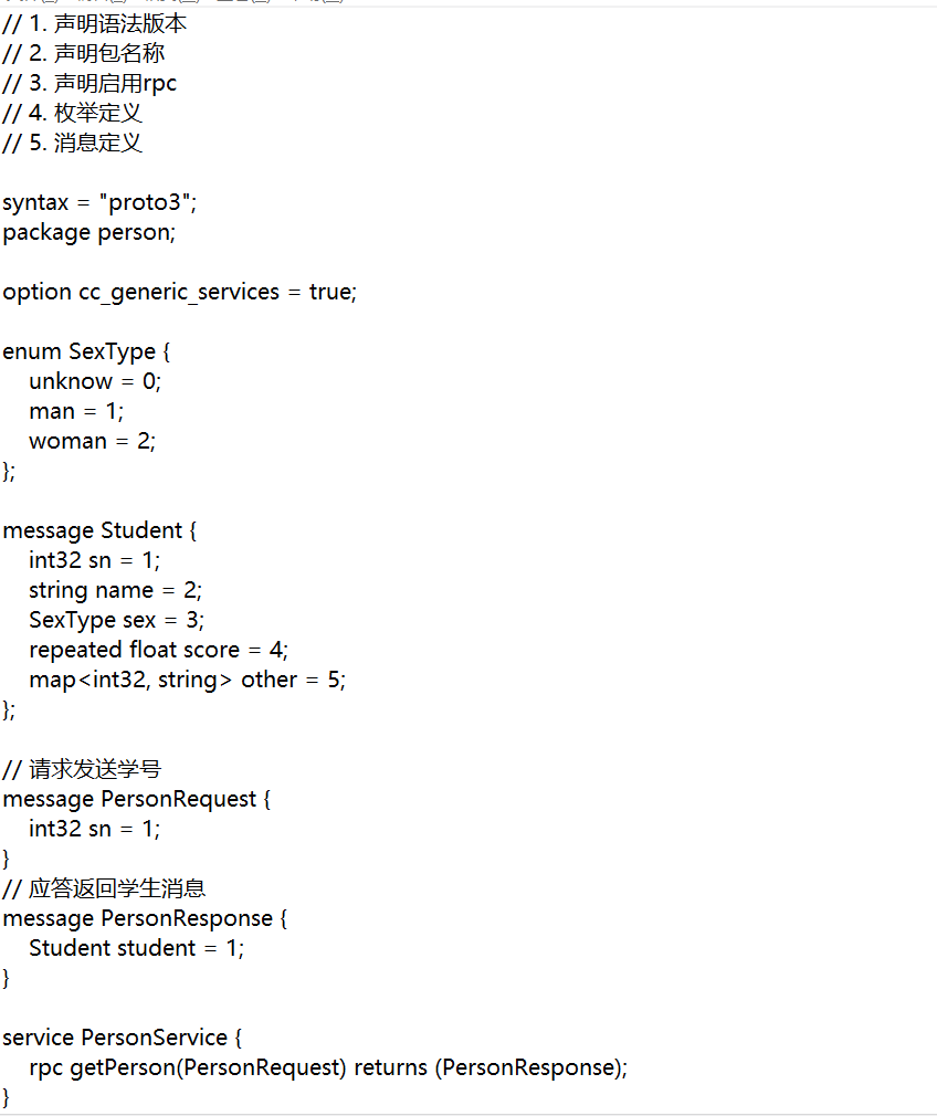 一、介绍1、作用类似于 Json 的数据交换格式2、组成消息:一个基本数据单元,类似结构体字段:消息中的数据项,每一个字段都有唯一标签号和数据类型枚举:enum 定义服务:用于 rpc 远程调用中的接口定义3、基础案例二、代码案例
