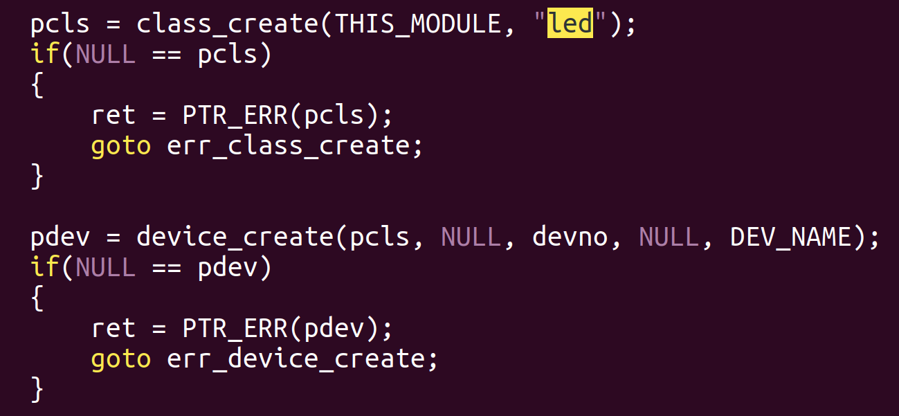 {int ret = 0;// 1. 使用 MKDEV 宏组合主、次设备号devno = MKDEV(MAJOR_NUM, MINOR_NUM);// 2. 初始化 cdev 结构体,关联操作方法cdev_init(&cdev, &fops);// 3. 将 cdev 添加到内核中,指定设备号和数量ret = cdev_add(&cdev, devno, 1);if(ret < 0)goto err_cdev_add; // 错误处理...