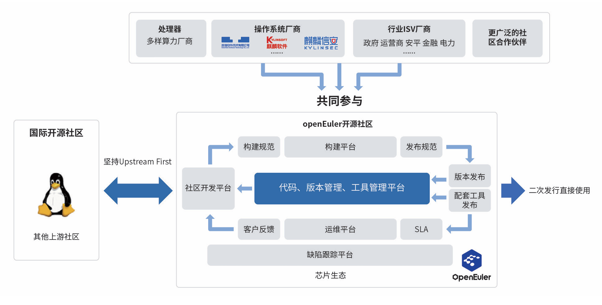 - 开发透明的生态建设:openEuler 社区与上下游生态建立连接,构建多样性的社区合作伙伴和协作模式,共同推进版本演进。