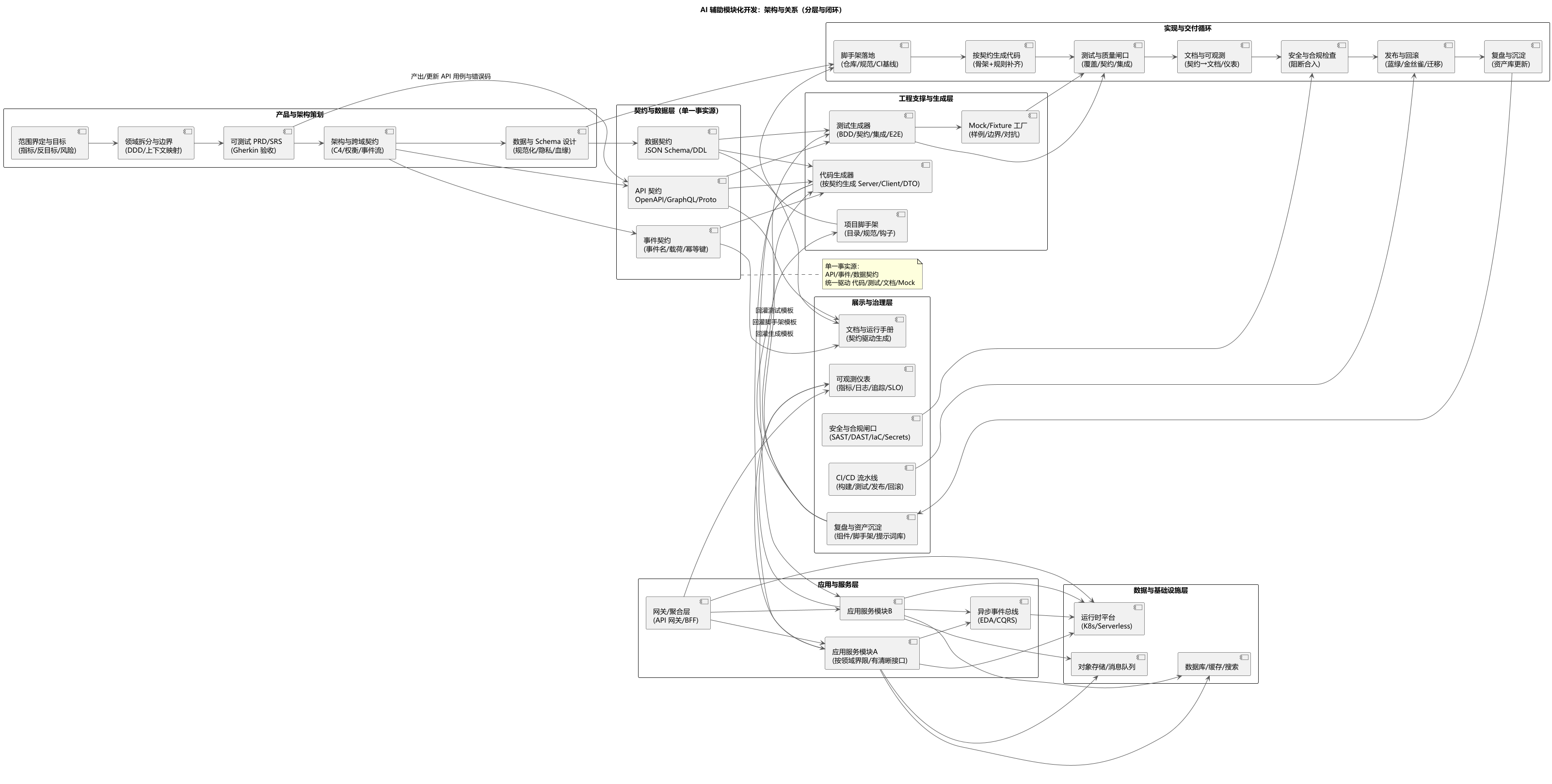 *@AI 辅助模块化开发流程(通用于任意软件)的摘要与架构关系图