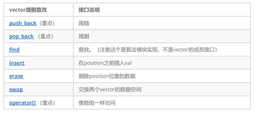 - capacity的代码在vs和g++下分别运行会发现,vs下capacity是按1.5倍增长的,g++是按2倍增长的.不要固化的认为,vector增容都是2倍,具体增长多少是根据具体的需求定义的。vs是PJ版本STL,g++是SGI版本STL。