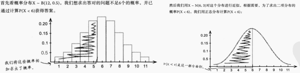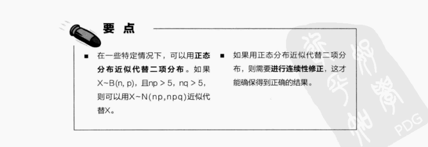① 如果X~B(n,p),当np>5且nq>5时,则使用正态分布近似代替二项分布