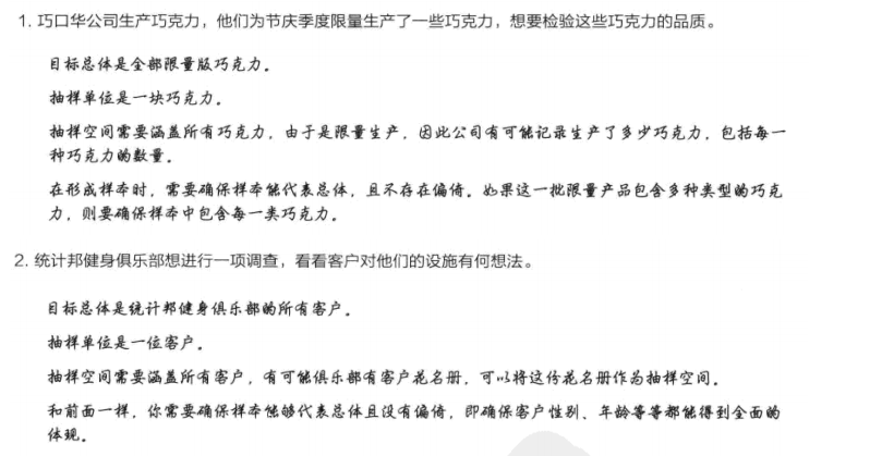 | 抽样单位错误 | 选择的抽样单位不符合研究目标 | 若要研究 “每盒巧克力的品质”,抽样单位应为 “一盒” 而非 “一块” |