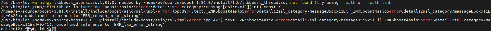 然后编译时需要指定链接库文件:-lcrypto -lssl,否则会报错:
