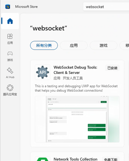微软商店(Microsoft Store)下载WebSocket Debug Tools: