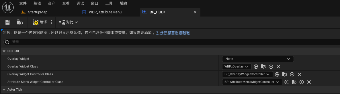 }3.创建属性菜单小部件控制器蓝图BP_AttributeMenuWidgetController: