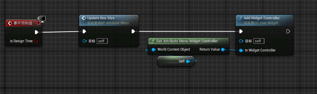 {APlayerController* PlayerController = UGameplayStatics::GetPlayerController(WorldContextObject, 0);if (!PlayerController) return nullptr;ACC_HUD* CC_HUD = Cast<ACC_HUD>(PlayerController->GetHUD());if (!CC_HUD) return nullptr;ACC_PlayerState* PlayerState = PlayerController->GetPlayerState<ACC_PlayerState>();if (!PlayerState) return nullptr;UAbilitySystemComponent* AbilitySystemComponent = PlayerState->GetAbilitySystemComponent();if (!AbilitySystemComponent) return nullptr;UAttributeSet* AttributeSet = PlayerState->GetAttributeSet();if (!AttributeSet) return nullptr;FWidgetControllerParams WidgetControllerParams(PlayerController, PlayerState, AbilitySystemComponent, AttributeSet);return CC_HUD->GetAttributeMenuWidgetController(WidgetControllerParams);