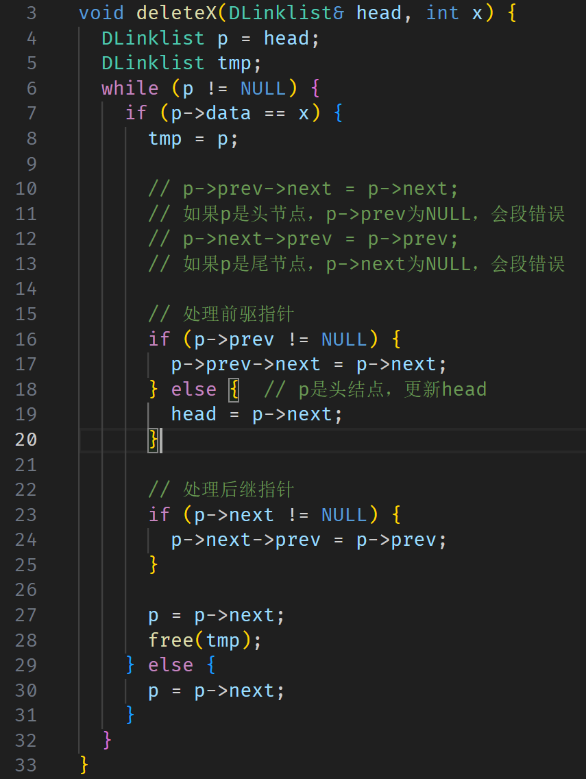 但要注意处理遍历到头结点和尾结点的情况,因为头结点的prev指向空,尾结点的next指向空,再