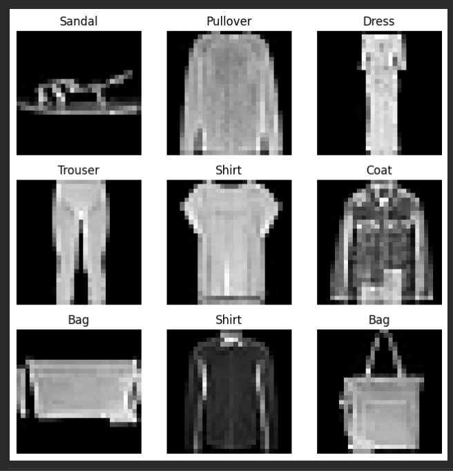 labels_map = {0: "T-Shirt",1: "Trouser",2: "Pullover",3: "Dress",4: "Coat",5: "Sandal",6: "Shirt",7: "Sneaker",8: "Bag",9: "Ankle Boot",