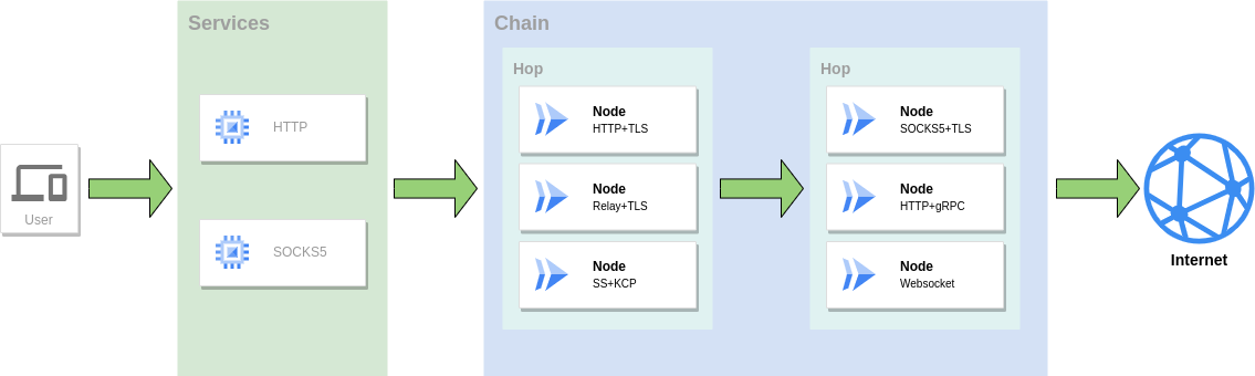 - 为了安全与灵活性,代理链希望支持多协议(如 HTTP、SOCKS5、TLS 封装)并且要能做转发、隧道、反向代理。