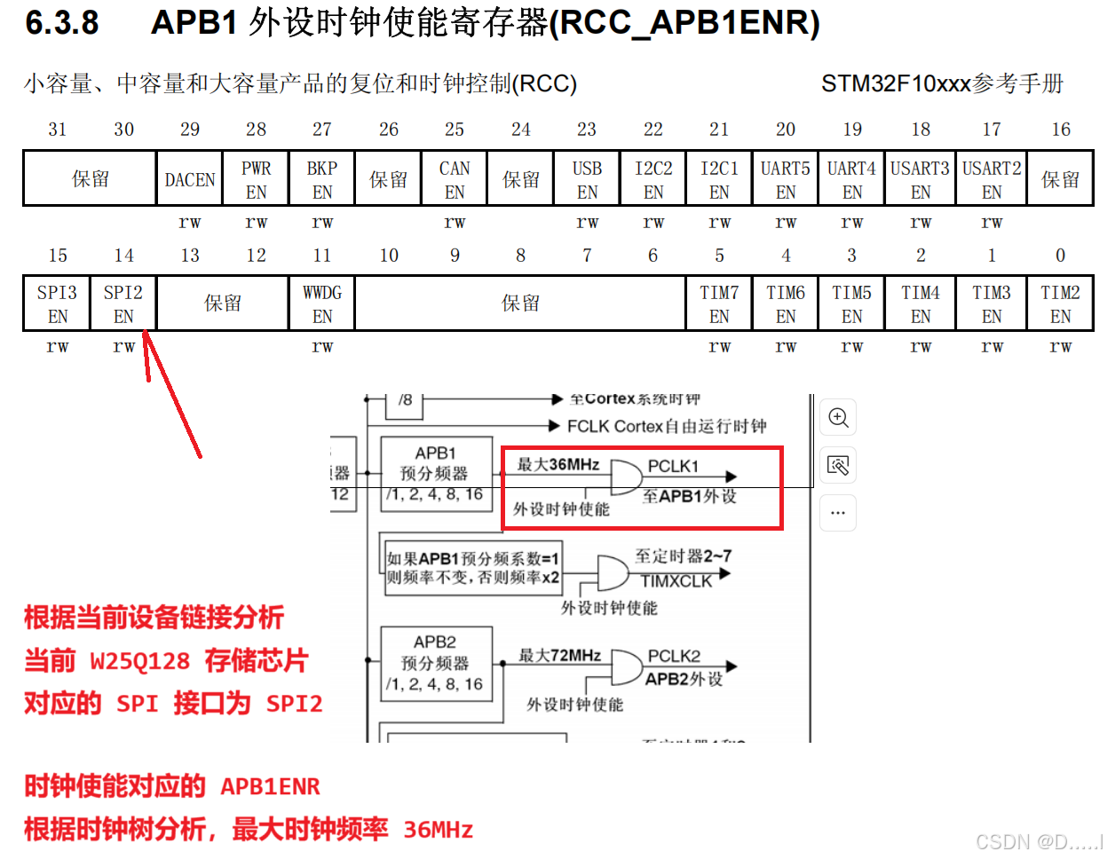 - 根据当前原理图分析,时钟使能对应 GPIOB 和 SPI2