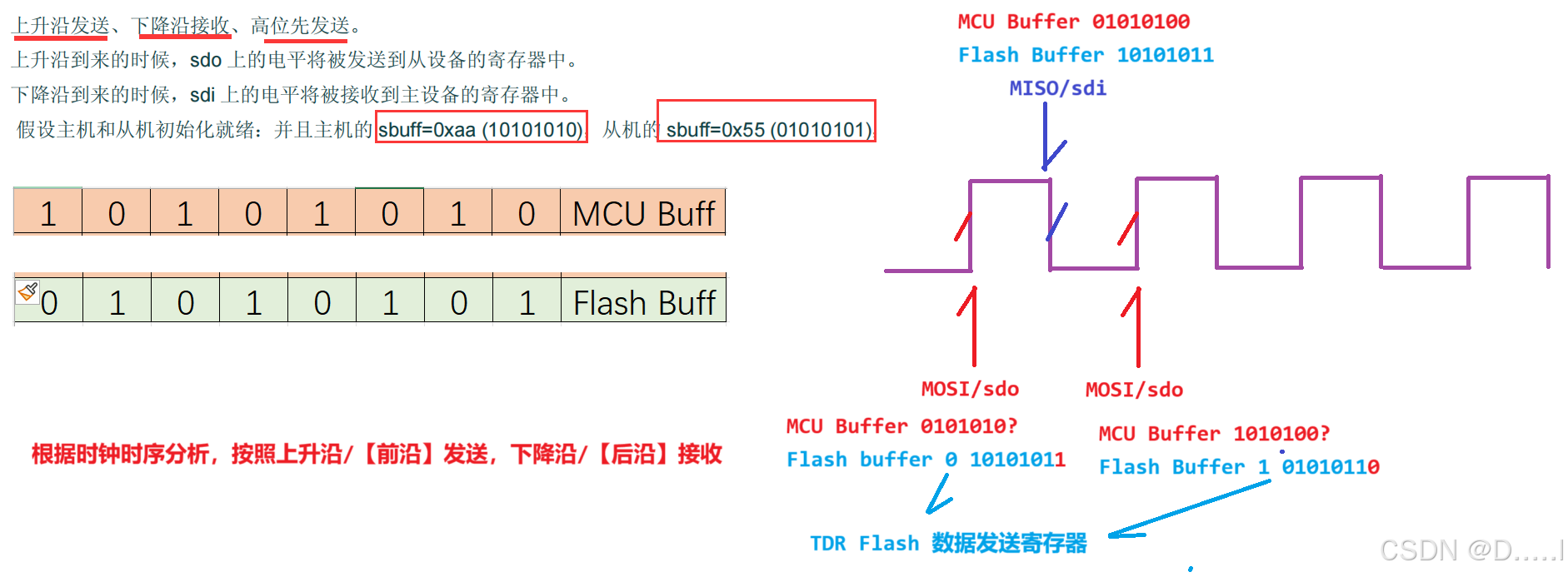 - 单向DO(输出)引脚则在CLK的下降沿从设备读取数据或状态。DO 链接引脚是 MCU 的MISO/sdi