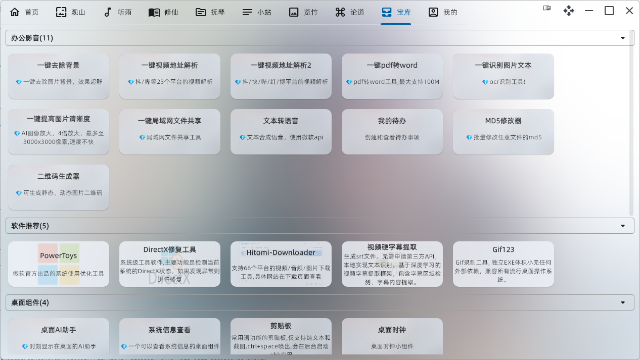 基于flet的一款windows桌面应用,实现了浏览图片、音乐、小说、各种资源的功能,还有gpt、ai绘画等高级功能。