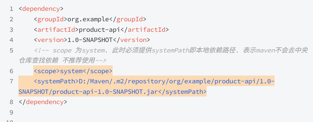 systemPath 标签中的路径,对应我们本地的 Maven 仓库的地址