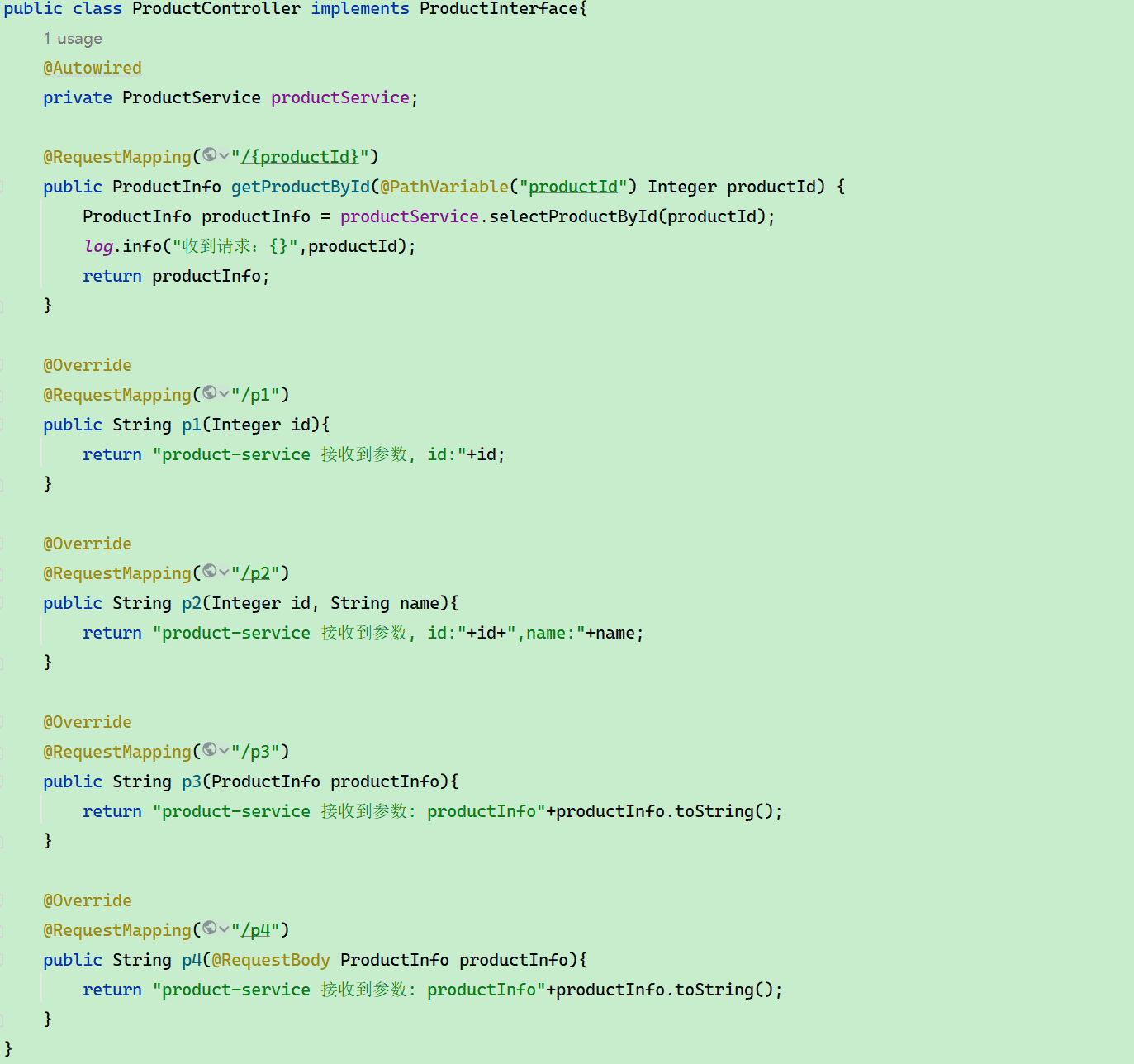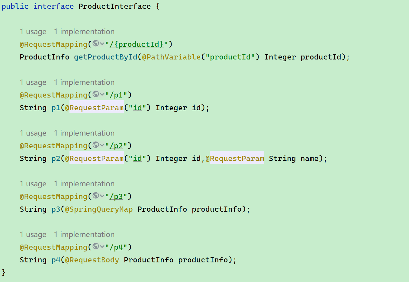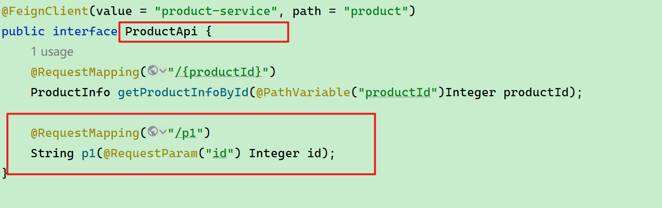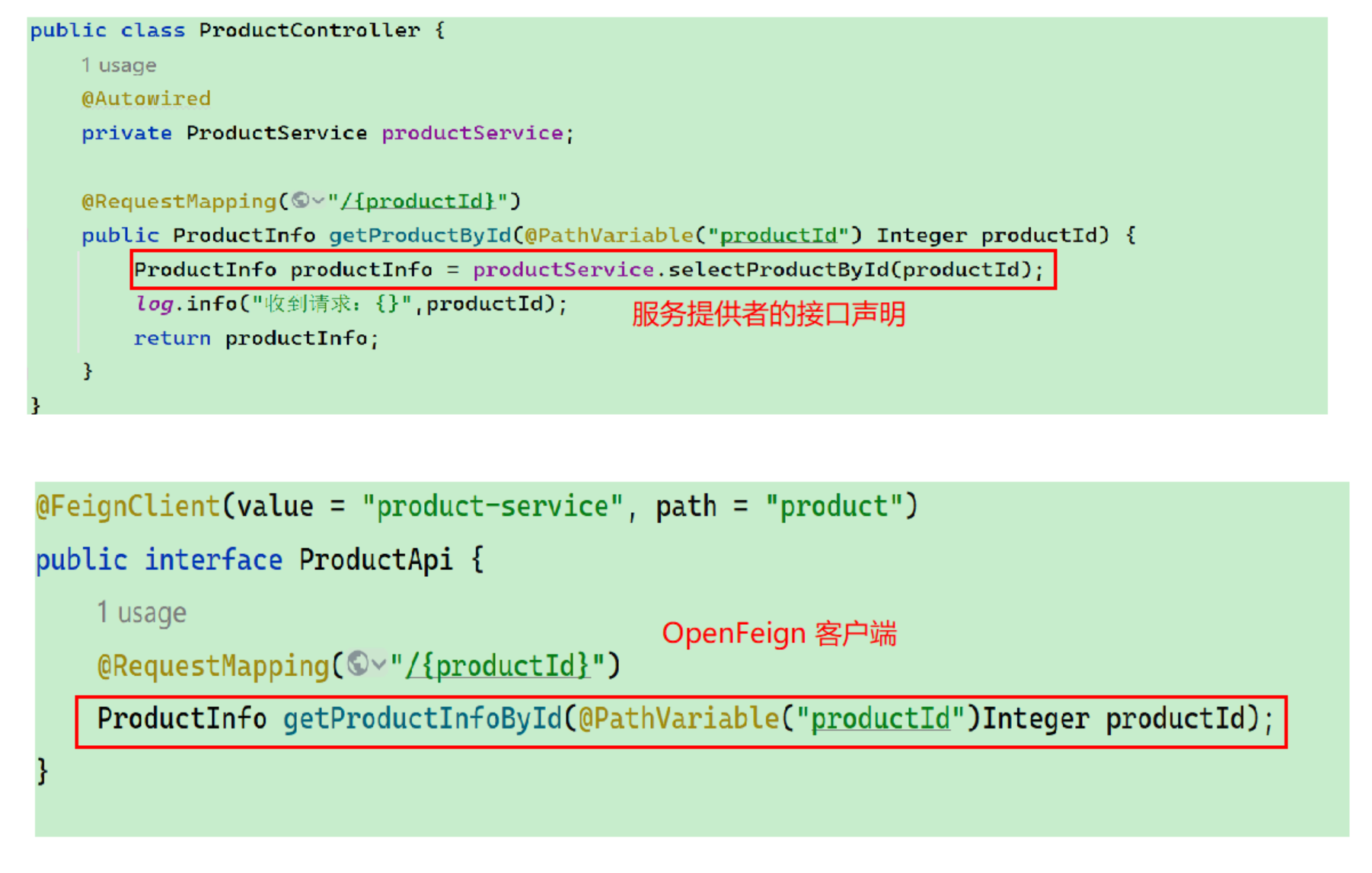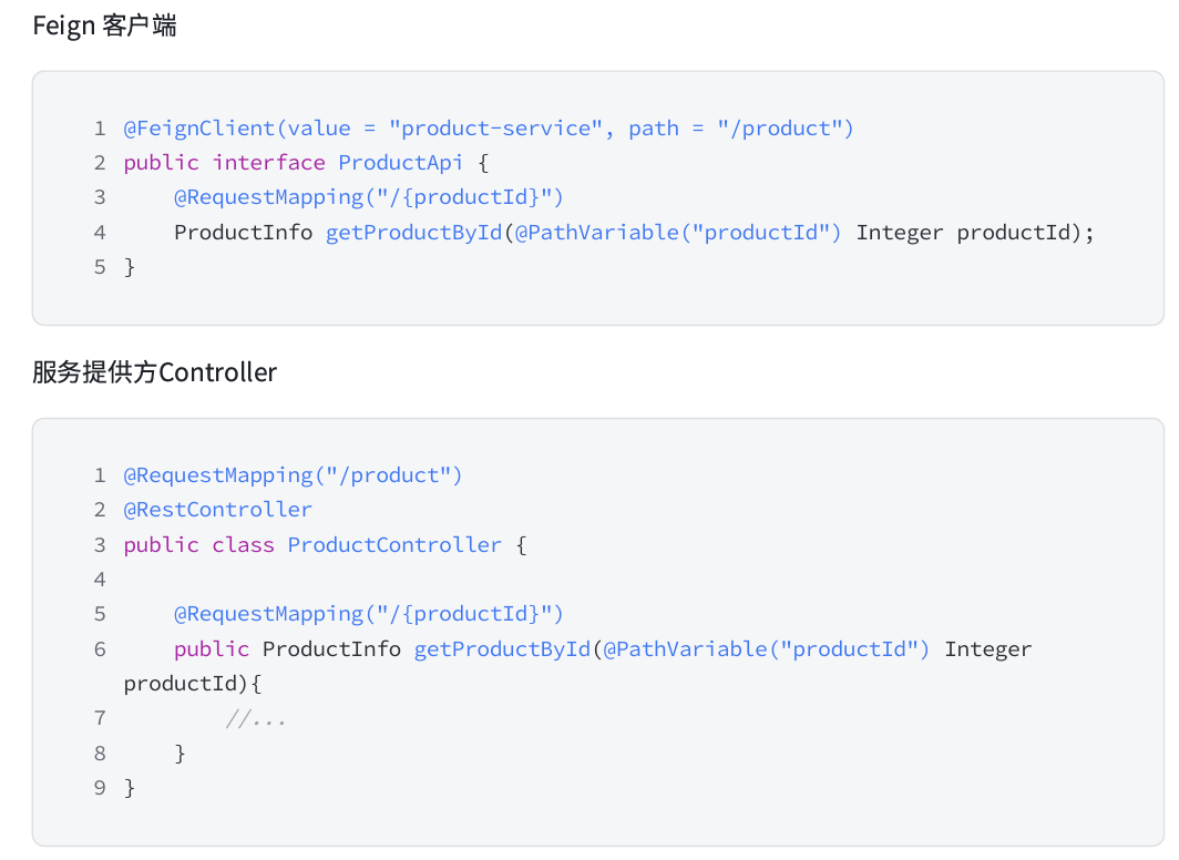 OpenFeign 的客户端(即我们上文实现的 ProductApi)和服务提供者的接口声明非常相似。