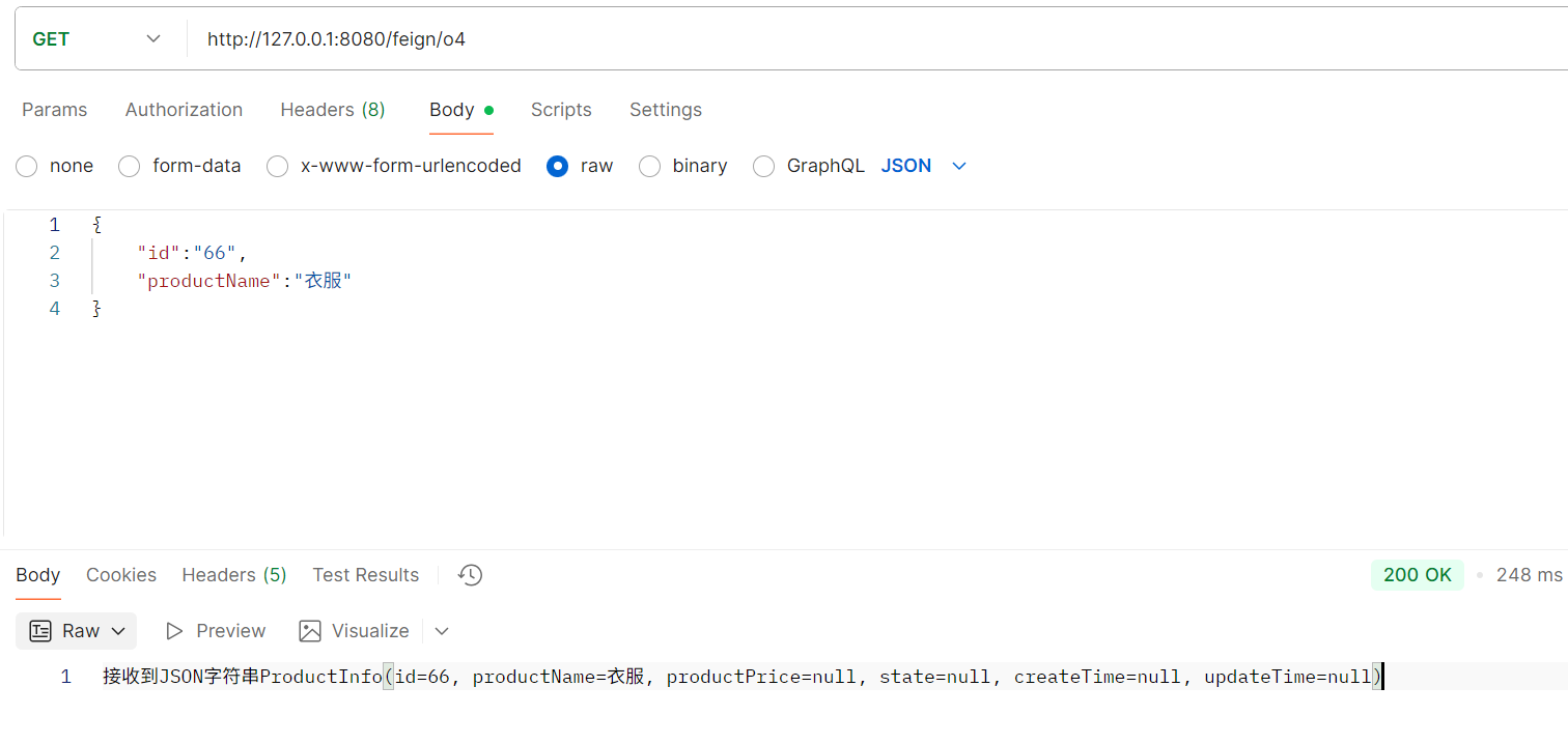 上面例子中,只演示了 Feign 从 URL 中获取参数,下面是 Feign 参数传递的方式