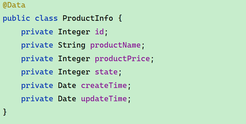 注意!由于我们在前面将 ProductInfo 对象抽取到了新的 jar 包 product-api 中,所以之前导入的 ProductInfo 类全会报错,之前的 ProductInfo 都是来自各自模块中的 ProductInfo,现在都被我们注释掉了,需要重新导一下包~~(此处没有报错是因为我已经都导完了~~)