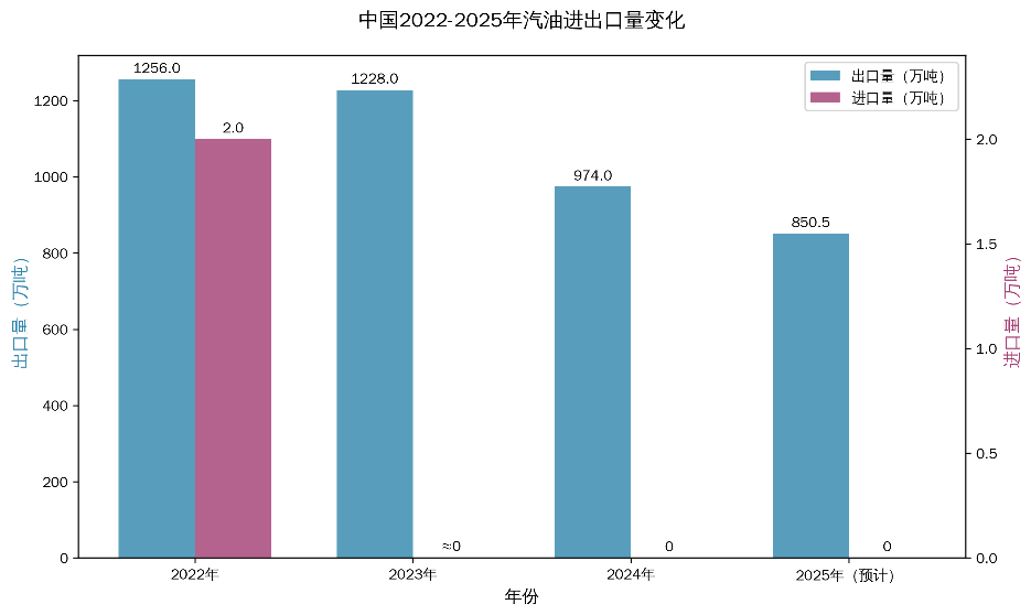 [3] 中国海关总署. 2022-2024年中国汽油进出口统计年报[R]. 2025.