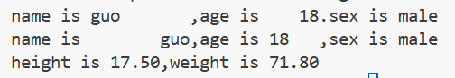 print(f"height is{17.5:6.2f},weight is {71.8:5.2f}");#通过.设置小数点后的精度。运行结果: