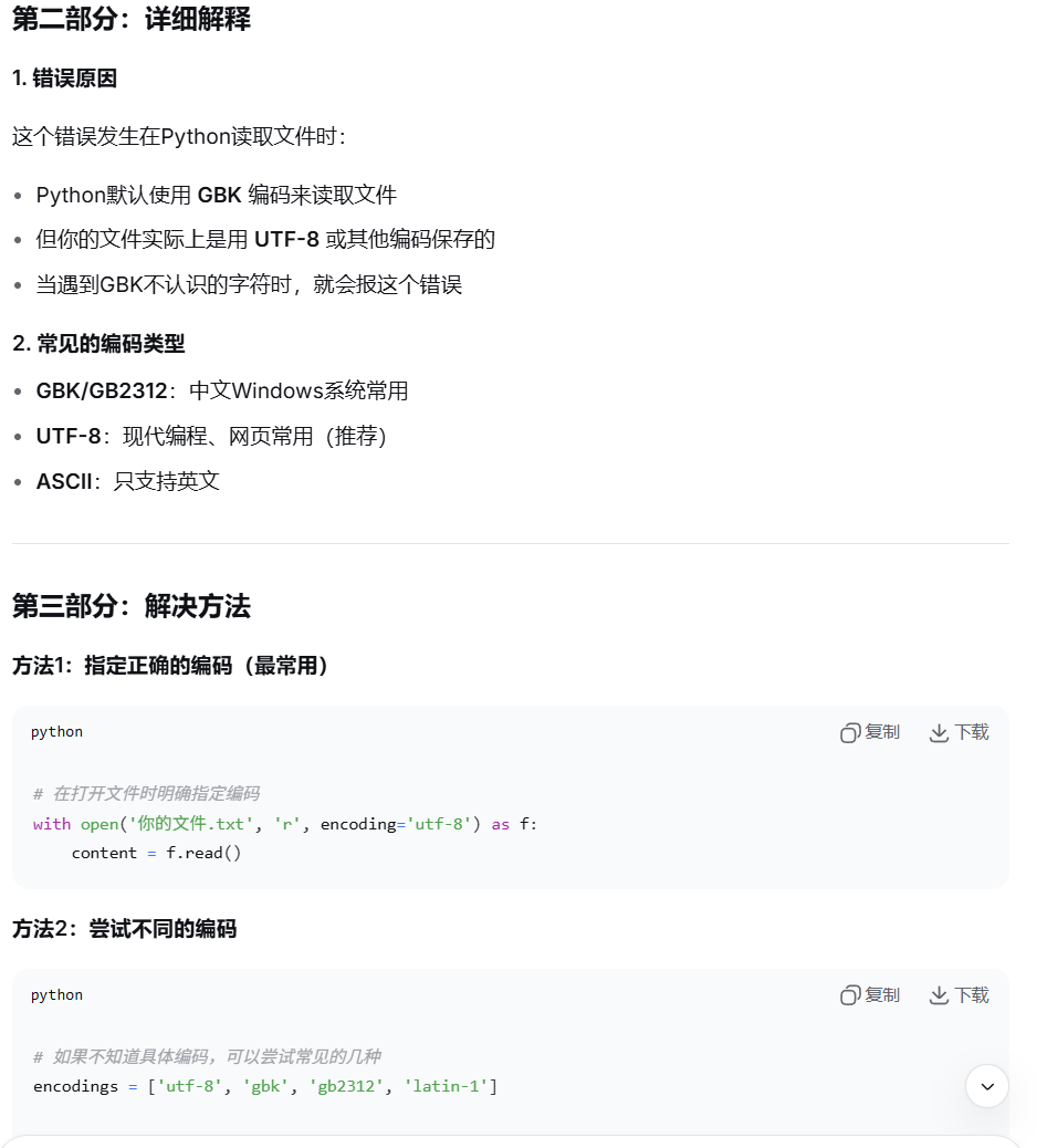1、文件打开错误,我改正的时使用了下面的方法一,'encoding='utf-8' 就可以了,因为我的不是gbk编码。