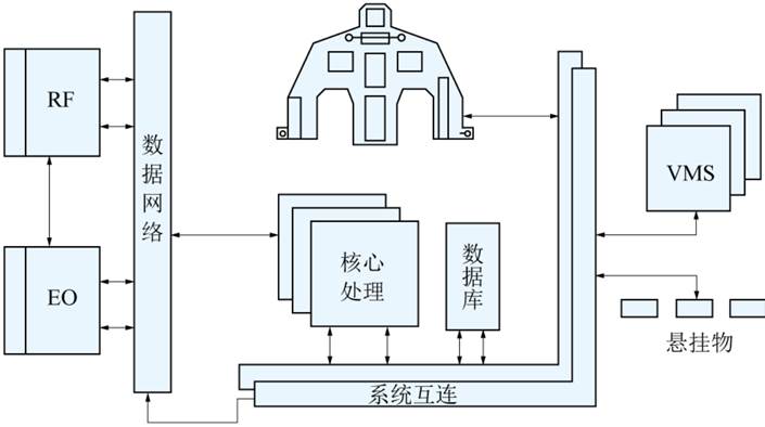 航电架构演变为模块化整合式,各传感器设备不再配备独立处理器,其产生的数据信息经过高速光纤数据总线传输,统一交给中央计算机的通用集成处理器(也称:通信集成处理器CIP,Common Integrated Processor)或综合核心处理机ICP,Integrated Core Processor)。