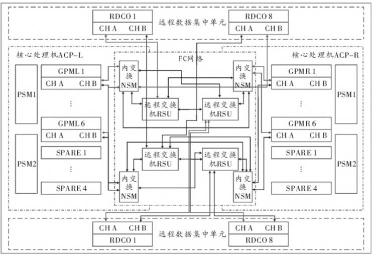通过一个光纤通道网络(OFCN)把各传感器、CNI以及显示器同ICP进行连通。连接的关键部件是两个32端口的ICP开关模块。ICP、CNI、显示管理计算机同飞机管理系统外部的连接采用IEEE1394B(Firewire)接口,它的传输速度为400 megabit/s。