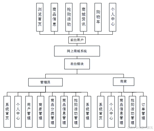 管理员登录到系统后台后,可以对系统首页、个人中心、用户管理、商家管理、商品分类管理、商品信息管理、抢购活动管理、系统管理等功能模块进行管理;如图5-8所示。