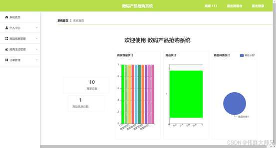 商家登录系统后,可以对系统首页、个人中心、商品信息管理、抢购活动管理、订单管理等功能进行相应操作,如图5-15所示。