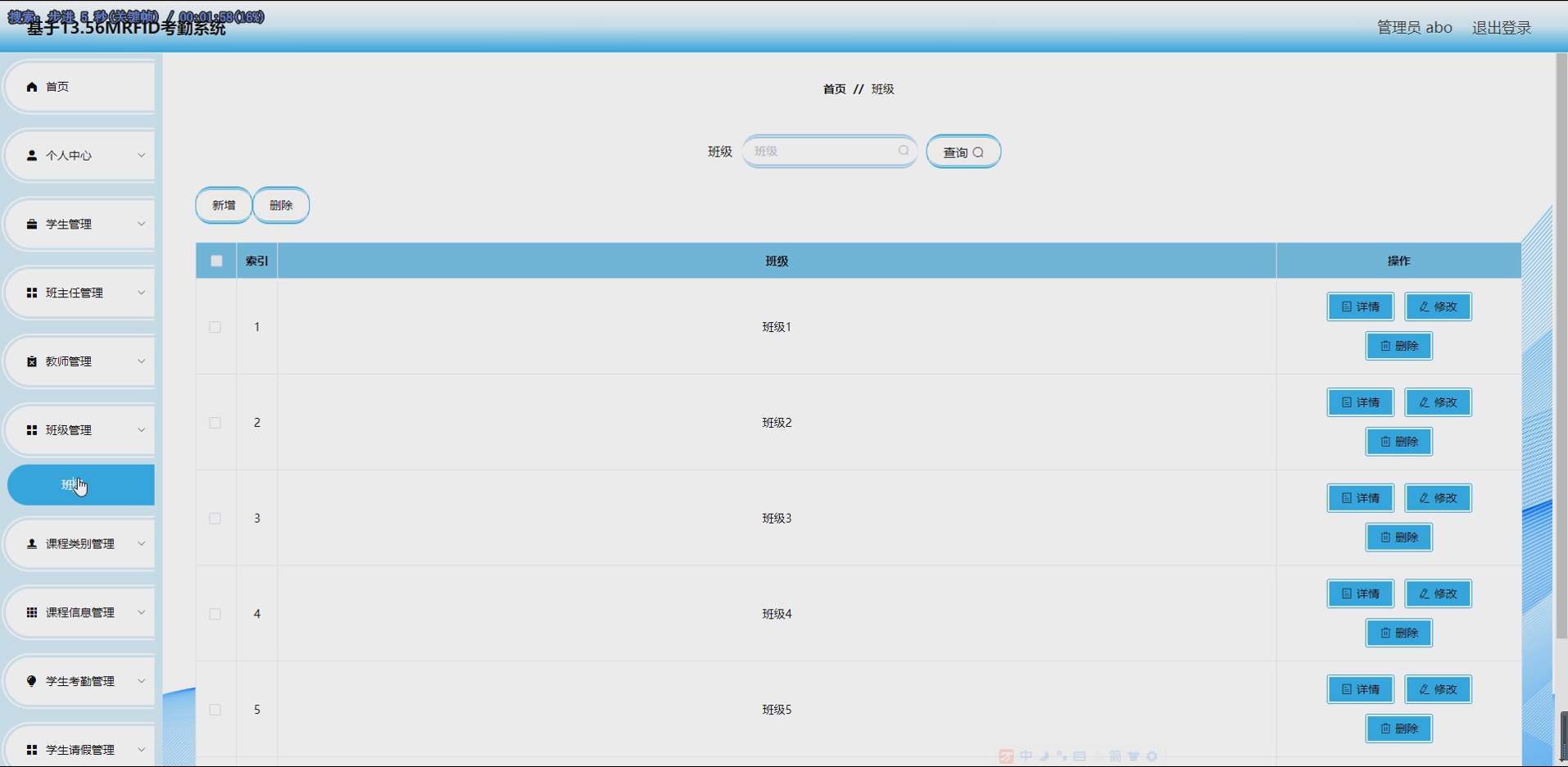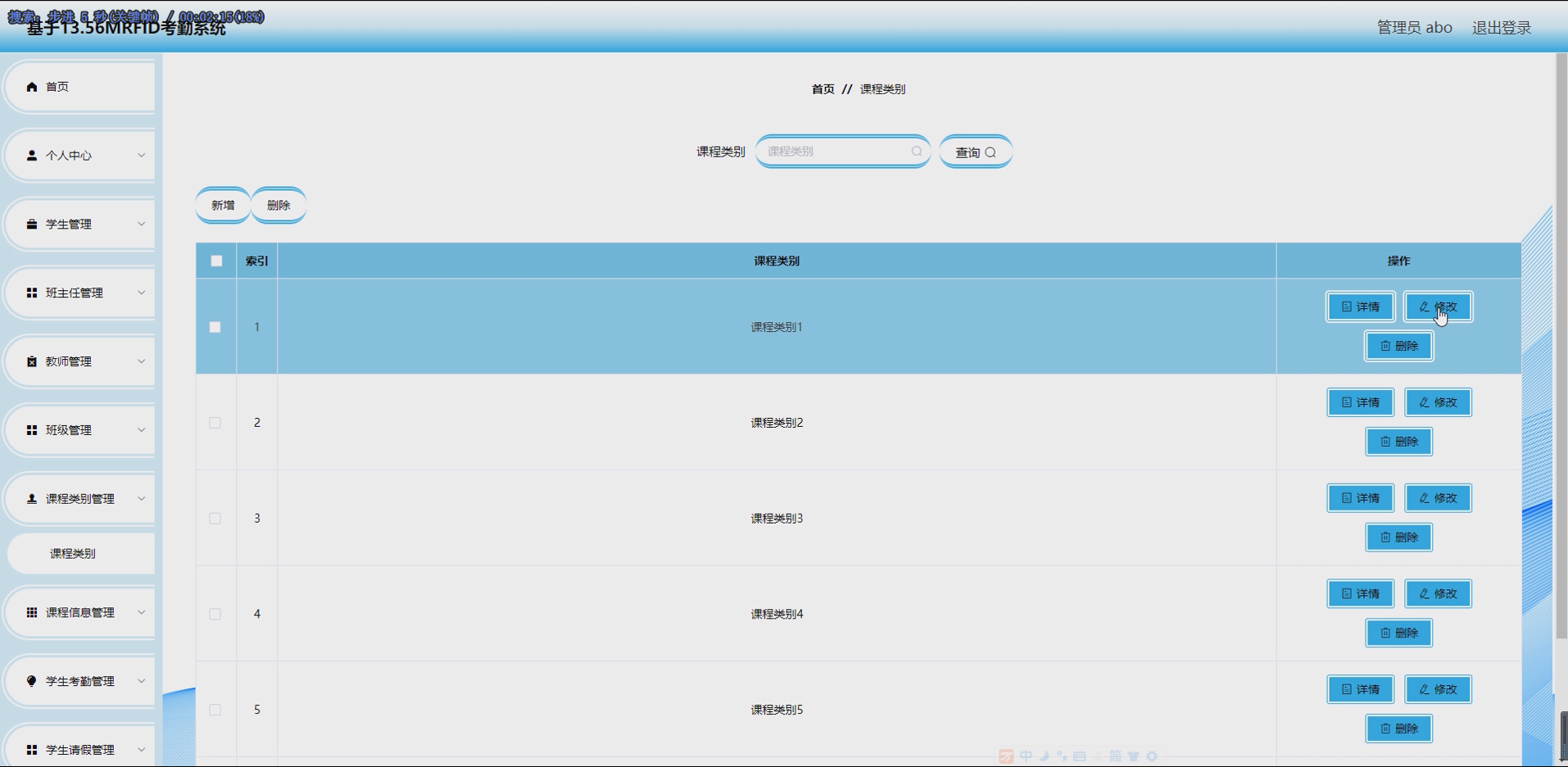 - 基础数据管理模块:完成班级、课程类别、课程信息的新增、修改、删除、查询操作。