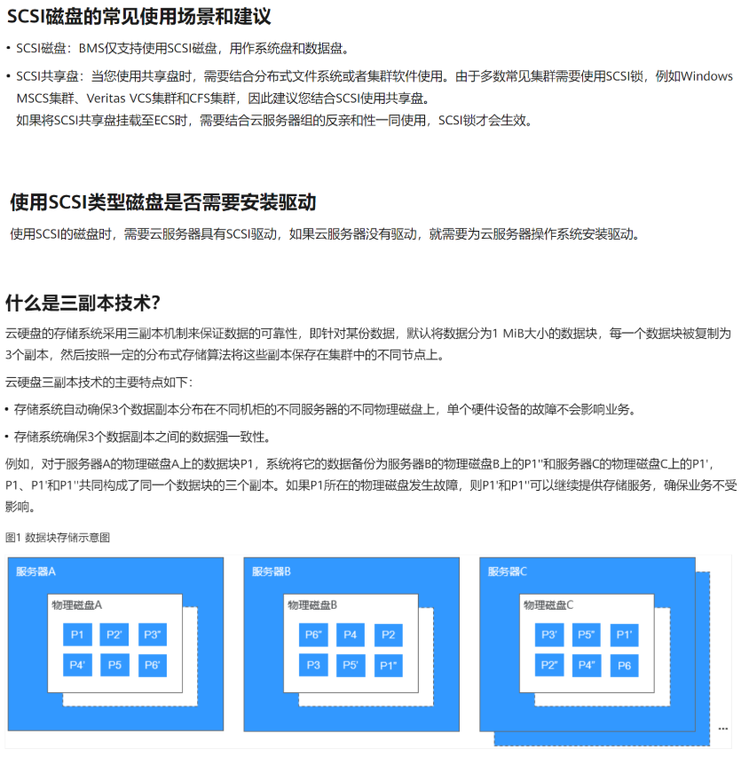 - SCSI类型:SCSI类型的磁盘支持SCSI指令透传,允许云服务器操作系统直接访问底层存储介质。除了简单的SCSI读写命令,SCSI类型的磁盘还可以支持更高级的SCSI命令。