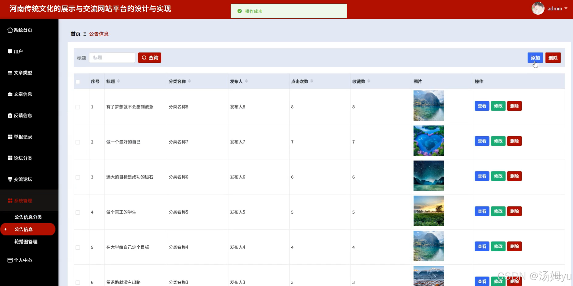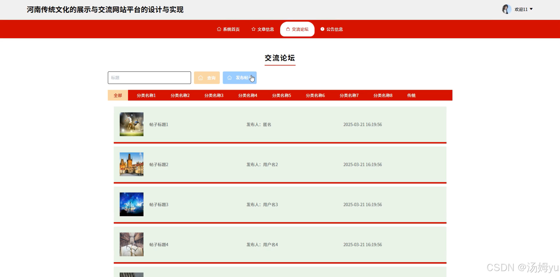 河南传统文化,作为中华民族的精神瑰宝,承载了丰富的历史信息和深刻的思想内涵。然而,在现代社会的快节奏生活中,河南传统文化的传承与发扬面临着诸多挑战。一方面,传统的学习方式如课堂讲授、书籍阅读等,往往难以吸引年轻人的兴趣;另一方面,缺乏具有针对性的,有效的交流平台使得文化爱好者难以聚集,共同学习、交流心得[1]。因此,河南传统文化网应运而生,旨在利用现代信息技术,系统地、全面地展示和传播河南传统文化。并且为河南文化爱好者提供一个开放、便捷、高效的传统文化交流平台,从而促进学术合作与知识共享。具体而言,平台具备用户管理、信息发布、文化分类、用户评论等功能,以满足不同用户的需求。通过不断优化系统性能,提升用户体验,使系统成为传统文化学习与交流的重要载体,为推动河南传统文化的现代化转型和国际化传播提供有力支持。
