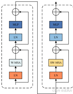 分支2(2D SwinTransformer):将信号重塑为2D特征图,通过窗口多头自注意力和移位窗口机制实现全局建模,降低计算复杂度。