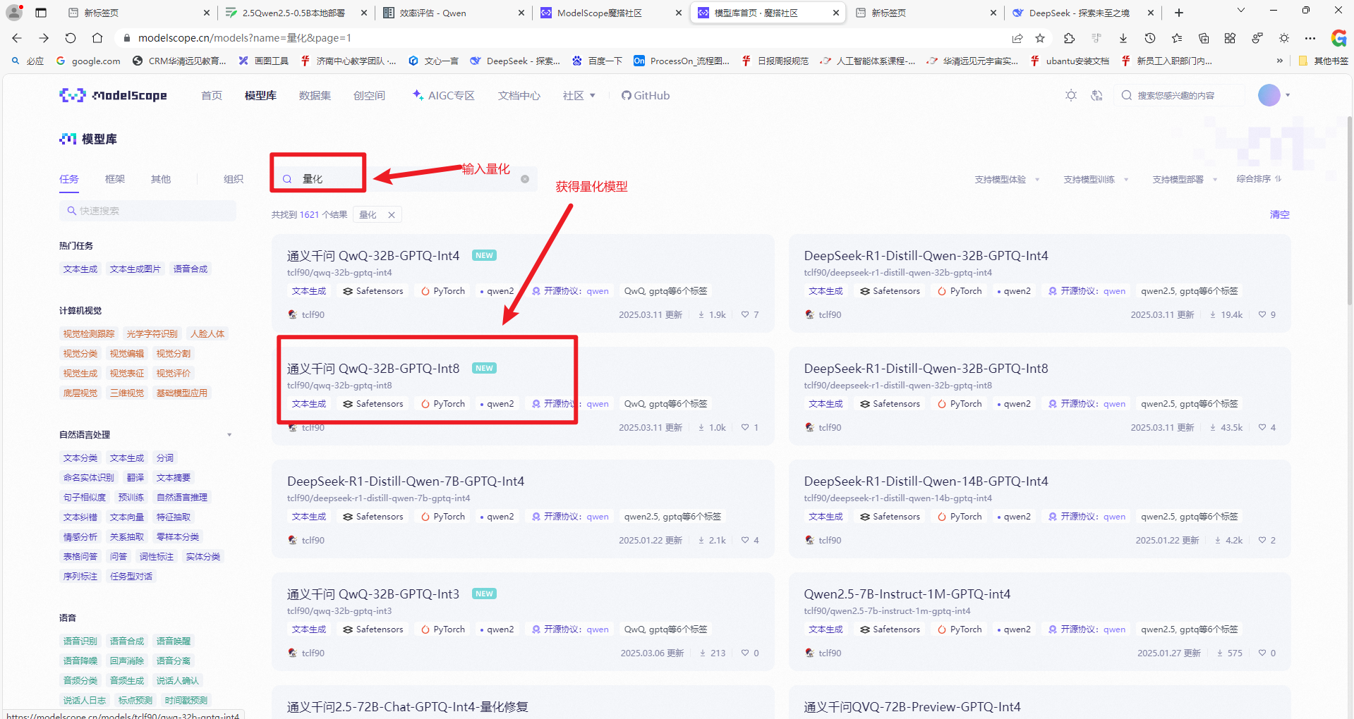 1.1.2.1从魔搭社区模型库中输入量化,得到量化后的模型
