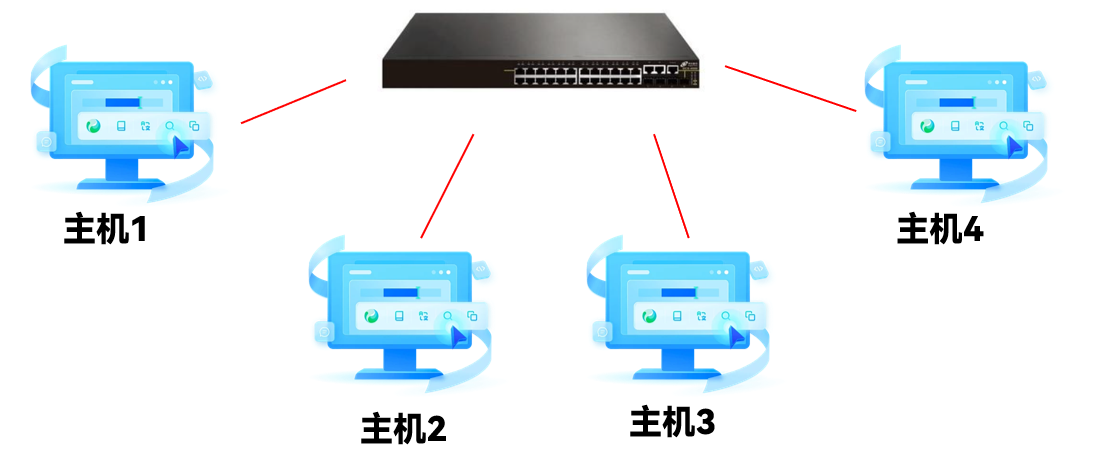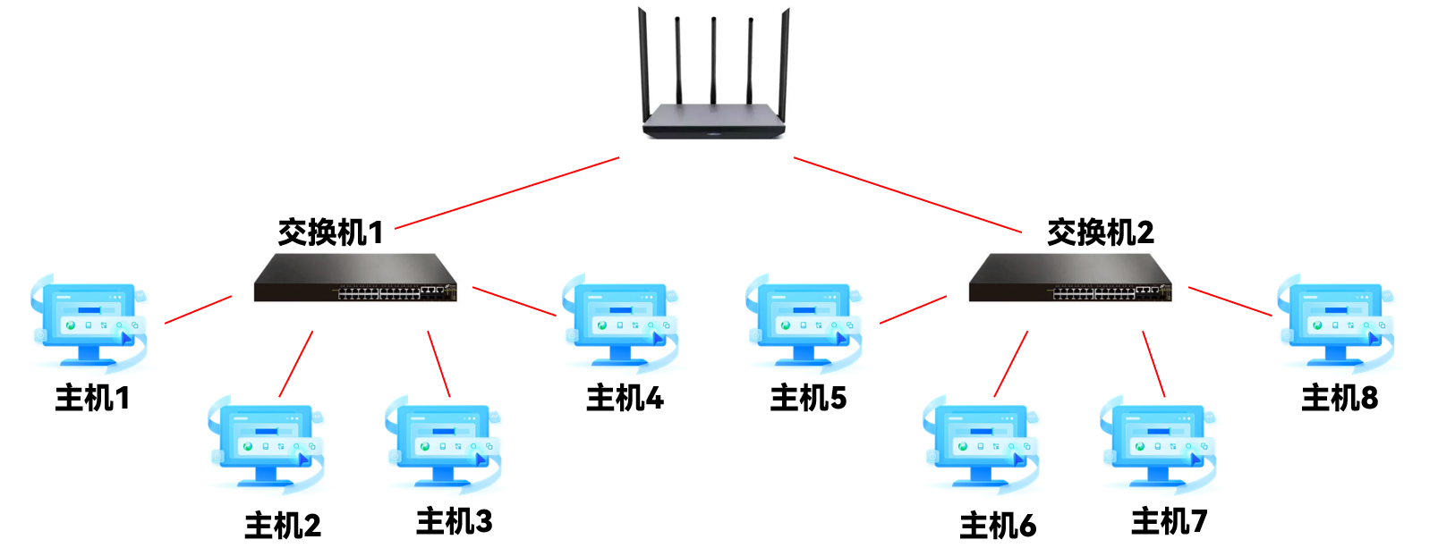 (2)交换机:实现数据链路层到物理层,相当于工作在数据链路层