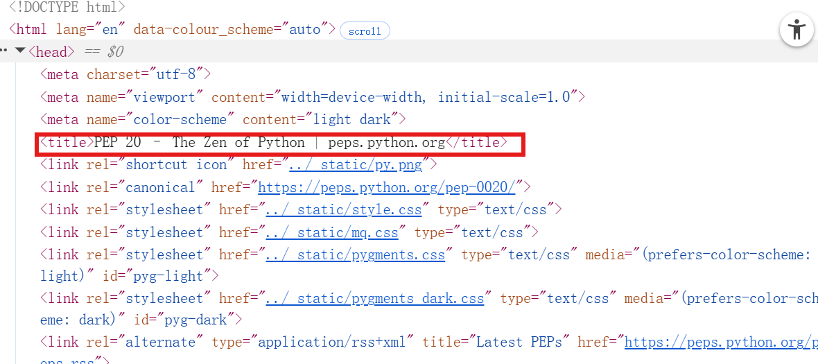 print(title)输出:PEP 20 – The Zen of Python | peps.python.org