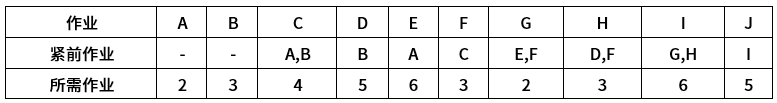 1.5. 某工程项目包括10个作业A~J,各作业所需的时间及其衔接关系如下表:如果作业D推迟3天开始,其他因素都不变,整个工程工期将推迟()天完成。