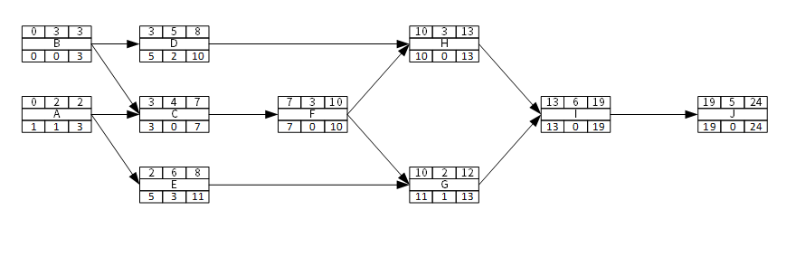 根据图示,列出所有的路径,然后找到最长的那条即为关键路径。路径BCFHIJ为关键路径,关键路径为24,D不在关键路径上,推迟3天,关键路径发生改变变为25天,故整个项目会推迟1天完成。